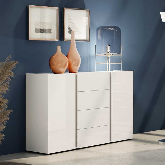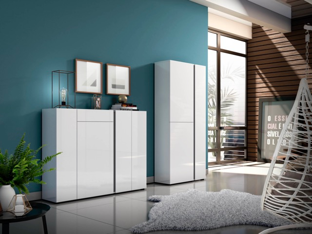 Essential lines and a high-gloss white finish define Aura, a collection designed to bring order and brightness to the entryway and living area. The anthracite vertical band runs across the fronts as a distinctive feature—a graphic accent that adds rhythm to the composition and makes each element instantly recognizable. Compact volumes, smooth surfaces, and balanced proportions create a cohesive, contemporary whole that integrates easily into spaces of different sizes. The continuity of the vertical detail brings together aesthetics and function, offering practical solutions without compromising the clarity of the design. A modern, luminous proposal, conceived to keep everyday spaces organized with a simple, immediate character.
