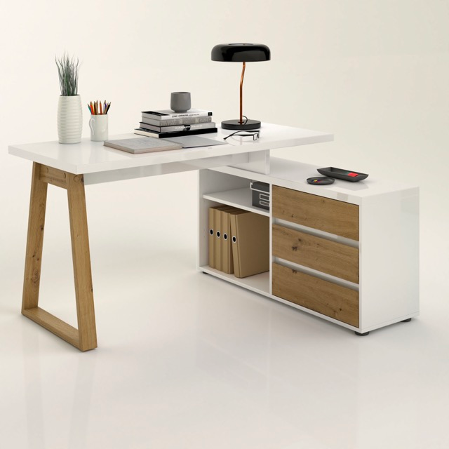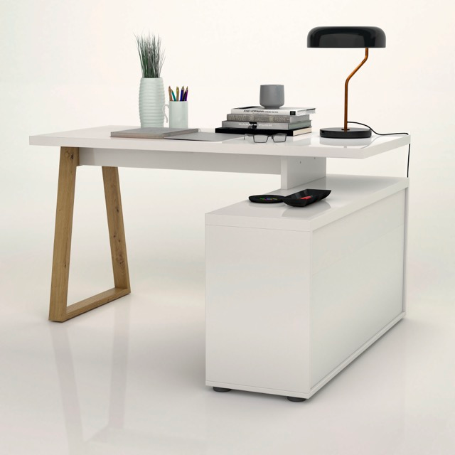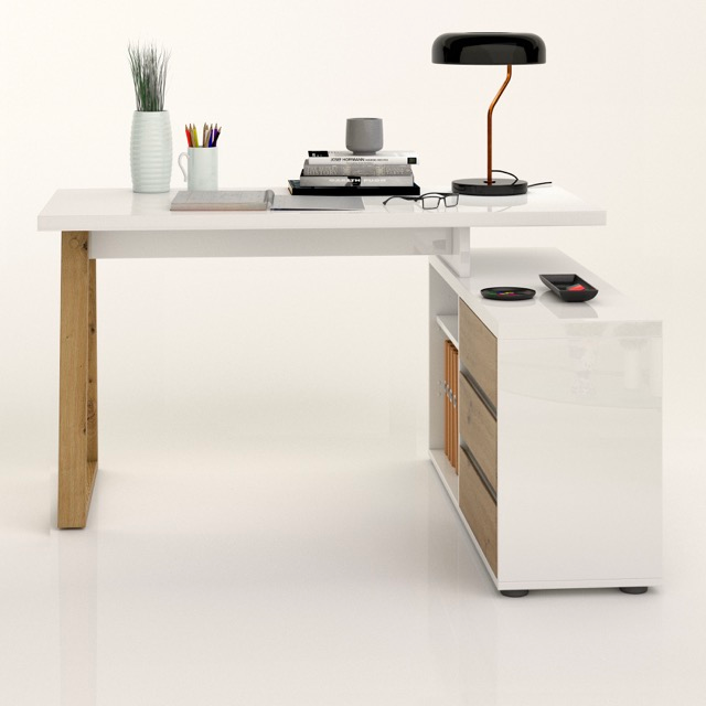 The Primo collection reinterprets the home office with a contemporary approach, combining high-gloss cashmere lacquered surfaces with oak effect details. The top rests lightly on a clean, integrated storage base, incorporating drawers and open compartments to deliver practicality and visual balance. The desk is supported by a natural-toned wooden structure that evokes craftsmanship and adds warmth to the environment. Its compact, rational design makes First an ideal solution for working from home without compromising on aesthetics or functionality. A smart and versatile proposal, designed to adapt effortlessly to everyday living spaces with style and simplicity.